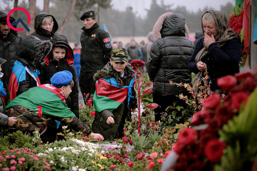 Ziyarətçilər Vətən müharibəsi şəhidlərinin məzarına gül dəstələri düzür, onların xatirəsini yad edirlər.