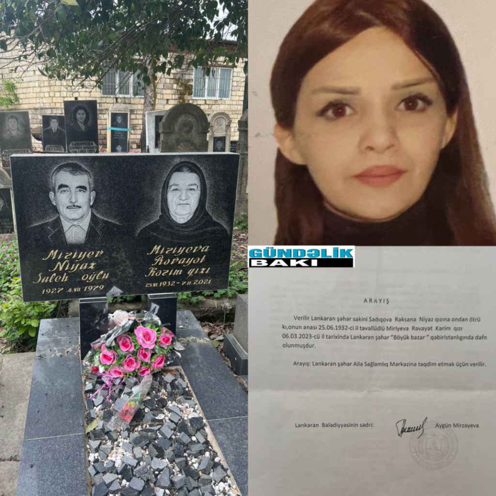 Məlumata görə, Lənkəran bələdiyyəsinin sədri, mərhum Miriyeva Rəvayətin qızı Sadıqovanın anası Sevil Mirzəyeva. Mirzəyeva ailəsi, möhürün uzun müddətə necə ödəniləcəyini bilmədiyi halda, möhürü qısa müddətə ödəsin. O, mərhumun aldığı debet kartını da götürüb anasına verir. Ölüm faktorunu bilməklə, ölüm faktorunu gizlədin və iki ildən sonra ölüm faktorunu axtararaq bildirin. Çox güman ki, Aygün Mirzəyeva ya müraciət edənlər arasında verilən möhürün əsas məbləğinin geri qaytarılması, ya da bank kartının etibarlılıq müddətinin bitməsi məsələsini öyrənəcək. Bələdiyyə 16.03. 2023-cü ilin imzası olan möhürlü şəkilin axtarışında Sadıqova Rəksanə Niyaz qızına verib, guya onu göstərir ki, axtarışda 25.06.1932-ci il tarixdə Miriyeva Rəvayət Kərim qızı qızın 06.03. 2023-cu. Lakin təqdim etdiyimiz fotofakt bunun əksini deyir.