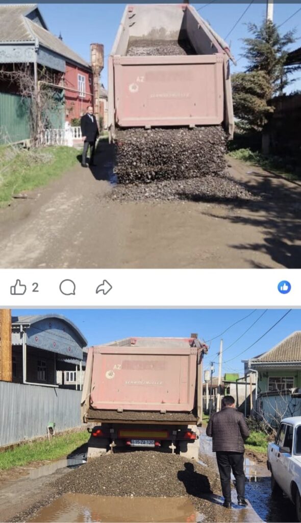 Bu gün sözü gedən Əhməd Ağayev küçəsində olduq,küçənin real vəziyyətilə tanış olduq,və şəhər bələdiyyəsilə əlaqə saxladıq,bildirdilər ki,sözü gedən küçəyə iki maşın qum çınqıl materialı tökülərək təmir