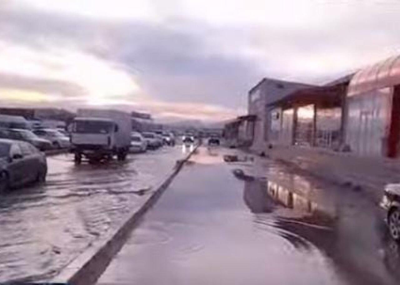 Milli.Az xəbər verir ki, qarın əriməsi səbəbindən “Sədərək” ticarət mərkəzində yolları və ticarət obyektlərini su basıb.